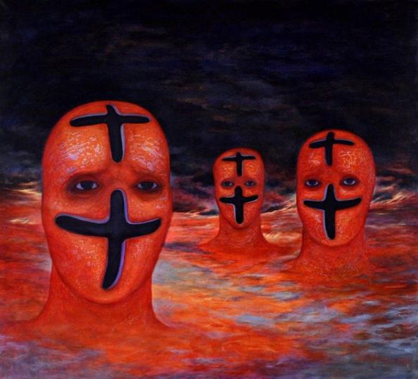 Most: gömbcsengőszerű vörös koponyákkal, talajból kinőtt nyakakkal és tengeri vulkánként füstölgő portrékkal teszik. Az eszköztár bővült, a lényeg csak finoman változott. A Tortura Humana I. kopasz, vörös fejei csaknem naturálisak lehetnének, ha ezt a képességüket nem lehetetlenítené el az, hogy a gömbölyű csengők réseihez hasonló kereszt alakú bevágások jelennek meg a homlokokon és a szájak helyett; így a tiszta tekintetük ellenére ki tudja, hogy valóban ártatlan áldozatok-e.