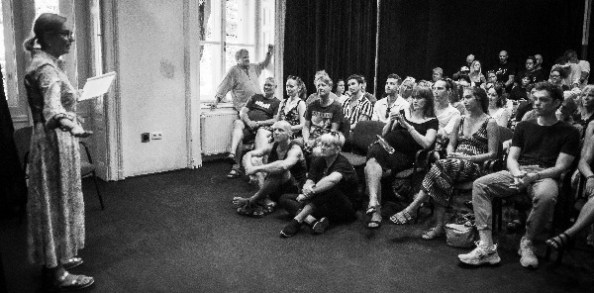 Ezt követően köszöntötte a társulat új tagjait: Tóth Ildikó, Major Erik és Kuttner Bálint színművészeket, valamint a gyakorlatát a Radnótiban töltő Kozma Veronika egyetemi hallgatót. Kováts Adél ironikusan megjegyezte, hogy nem múlhat el évad építkezés nélkül, a színház mellett most egy másik épületet alakítanak át hotellé. Ezek a munkálatok ebben az évadban is kihatnak a működésükre, de az előadásokat nem fogják zavarni.