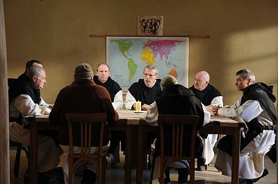 A kolostor közössége demokratikus mikrotársadalom. Működésük alapelve – akár az esküdteké –: az ellenszavazat hiánya dönt. Együtt mennek vagy együtt maradnak. Csendes vívódás, halk imák, mély töprengés után határoznak: maradni kell. Nincs más út.