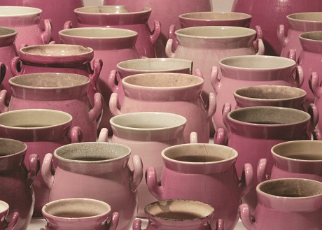 A kuglófsütők, vizeskancsók, zsírosbödönök csoportja nem csupán korrajz. Bemutatják a századforduló körüli élet egy szeletét, de emellett történetet is mesélnek. Elmondják, hogy a gyár, a nagy és dicső, világhírű Zsolnay mindig is hagyománytisztelő volt. Újításaik mögött ott maradtak a polgári konyhák polcain megbújva azok a rózsaszín edények, amelyek a megbecsülést valójában lehetővé tették.