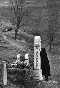 Az első egy ravatalos ház, az udvaron fel van ravatalozva a halott. Ma is háztól temetnek. Mikor mezőségi gyerekeket elvittek a múzeumba, mondták, hogy itt múmiák vannak, és vajon nem fogja-e megrázni a gyerekeket. Erre azt felelte valaki, talán Kallós Zoltán: Őket? Hiszen itt háztól temetnek. Vagyis ott a koporsó, fedele nincs, fekszik a halott a szobában, aztán kiteszik az udvarra, és ott búcsúzik tőle a falu. Ez meg egy gyászoló pár, s a harmadik képen egy asszony, aki ráfeszül a férjének a sírkövére.