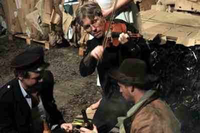 A színpad végében ül a kórus, a násznép és a zenekar az egész előadás alatt. Ahogy a nézők a másik oldalon, padon, fenekük alatt párnával. Közöttük meg a megtiport pillepalackokból, papírgúlákból és tömörített hulladékkötegből álló, újrahasznosított küzdőtér. A történet is reciklált, szájról szájra jár, és tanulságul szolgálhat mindenkinek.