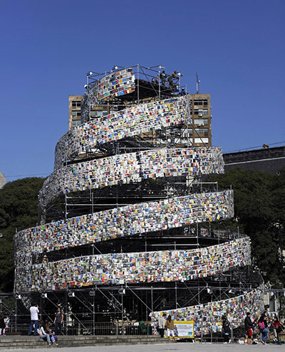 Könyvekből készült szobor Buenos Airesben - Marta Minujin készítette a könyv fővárosa cím elnyerése alkalmából 2011-ben