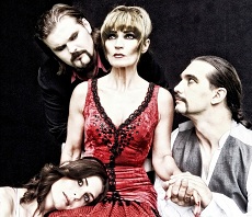 Elöljáróban egy pár szó a történetről: Alexandra, a kortalan arcú szépség, egyedül él egy nagy házban, a környék lakói pedig tiltják tőle a gyerekeket, ki tudja, miért. Ennek ellenére három kisgyerek – két fiú és egy lány – mégis nála tölti ideje nagy részét, az asszony inspirálja őket. Hatására húsz évvel később mindhárman művészpályára kerülnek. Már ismertek és népszerűek, amikor egykori mentorukat meglátogatják. Hármójuk között eleve vannak ellentétek, és ahogyan az egy jó kamaradarabban lenni szokott, a negyedik fal mögött ezek kiéleződnek. Ha ezt a szituációt Lars von Trier írta volna meg, minden bizonnyal lerágtuk volna a körmünket az előadás alatt az izgalomtól, még akkor is, ha az egész vámpír témakör kimarad belőle. És ha nem énekelnek. Sőt ha mindez elmarad, talán még élvezhető is lett volna. Nem kellett volna sok hozzá: kis tehetség, de legalább némi jó iparos munka.