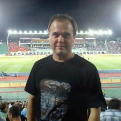 (A szerző fotóját engedéllyel vettük át a Facebookról. A magyar válogatott meccsén készült, ahol Segesvár, Drakula szülőhelye feliratú, Vlad Tepest ábrázoló pólót viselt)