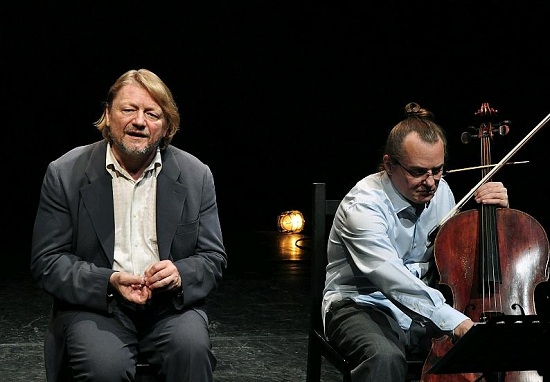 Dömötör András rendező hirtelen nézőpontváltásokkal érzékelteti a beszélő személyének változását. Hegedűs D. Géza zökkenőmentesen építi fel az előadás szerkezetét, Márkos Albert pedig szigorú fegyelemmel, mély alázattal követi minden rezdülését. Ez az elbeszélési technika mindkettőjüktől komoly koncentrációt követel. A színpadi változatot készítő Francis Huster, továbbá a színész, a muzsikus – és persze a rendező – összjátéka révén a monodráma valódi többszereplős történetként elevenedik meg.
