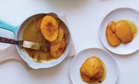 • A mangószeleteket egy rétegben tegyük a forró serpenyőbe, süssük körülbelül 5 percig, közben egyszer fordítsuk meg. Ha már mindkét oldalukon világosbarnák, hagyjuk a serpenyőben hűlni.