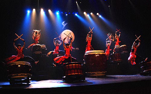A taiko dobolás igen látványos műfaj, jellegzetes, táncszerű, akrobatikus mozgással és még jellegzetesebb méretű dobokkal. Vannak köztük egészen kicsik, alig néhány ökölnyiek, és akkorák, hogy kitárt karral sem érnék el a két peremét.
