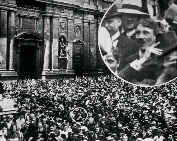 Adolf Hitler életét gyökeresen megváltoztatta a nagy háború. A sors iróniája, hogy 1913-ban Hitler a monarchia hadseregébe történő besorozást elkerülendő ment Németországba. Ennek ellenére fennmaradt egy fénykép, amelyen 1914-ben Münchenben a háborút üdvözlő lelkes tömeg közepén áll.