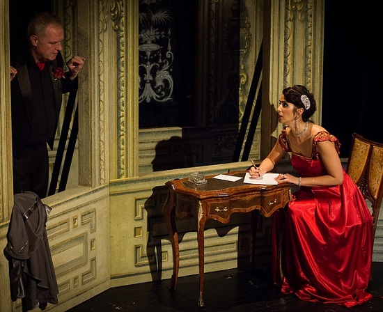 A Karinthy Színház kicsi színpadán a tágas műteremlakás és a hatalmas Andrássy úti palota illúziót keltő képét kapjuk Horesnyi Balázstól. Ebben tűnik fel Szabó P. Szilveszter rokonszenves külsejű, kicsit link festője, akit minden nő szeret. Őt a hírneve teszi vonzóvá, a monológjai kissé patetikusak (de hát ilyen a bonviván sorsa), és olyan „szép meghatóan mond le a szerelmérül” – hogy az ősbemutató korának stílusát idézzem.