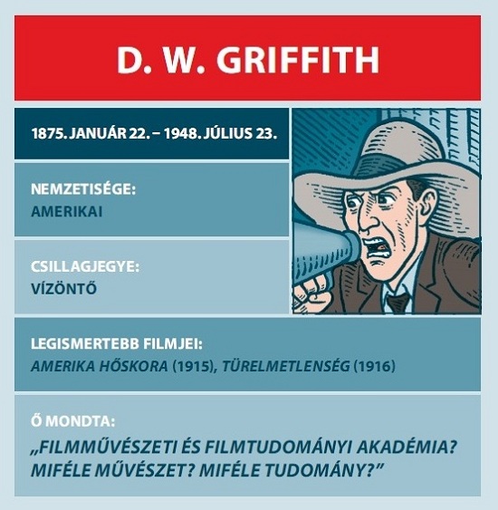 A filmrendezők George Washingtonja D. W. Griffith volt – a filmrendezés „alapító atyja” –, akinek zsarnoki viselkedése és hatalmas étvágya irányadóvá vált az utána következő filmkészítők számára. Szalmakalapjával és túlméretezett szócsövével izikailag is megtestesítette a rendező őstípusát. Az utána következő filmesek többsége ugyanakkor szerencsére nem tette magáévá Griffith másik tipikus személyiségjegyét: rasszizmusát, amely olyan méreteket öltött, hogy elhomályosítja korszakalkotó némafilmjeinek kétségtelenül briliáns ragyogását.