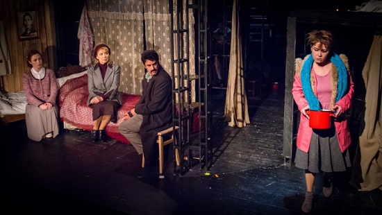 Karinthy Márton rendezésével egy kicsit elébe megy a néző kérdéseinek. A nagy történelmi fordulatokról lehet valami elképzelésünk, a közelebbi múlt cizellált részleteit talán kevésbé ismerjük. Cini négy évtizeddel ezelőtt még alapozhatott azok emlékeire, akik átélték a főváros ostromát, most viszont már rá kell erre segíteni. A nagyon sűrített (halálközeli) helyzetben az alakok kissé karikatúraként viselkednek. Murányi Tünde kedves, darabos, kellően butácska lotyót mutat, aki hallhatóan valami távolabbi faluból érkezett a fővárosba, de ott sem emelkedett magasabbra. Bencze Ilona Ferenczi ezredesnéje a mozdulataival, hanghordozásával a lepusztult körülmények között is erőlteti a méltóságot – nem csoda, hogy nevetségessé válik. Gáspár Kata szeleverdi, de a jóba már belenyalintott leánykája egyszerre kiábrándult poszt-gimnazista (elalvó mackóval) és ölelésre vágyó majdnem-nő.