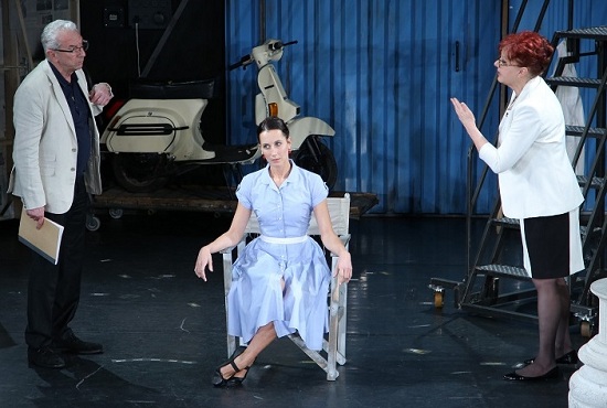 Egyedül a mopeden, Rómában! (elöl: Fekete Ernő, Balla Eszter, Szikszai Rémusz, hátul Cseh Judit, Nagy Dániel Viktor)