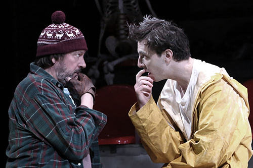 Hamlet királyt (vagyis az apa szellemét) Gálffi László adja: egyszerűen, mindenfajta túlzástól mentesen (még csak az kéne…!), és egy mai áldozat hangján szólít fel bosszúra. Gálffi még két alakot hoz a színre: előbb a színészkirályt, aki a királyfi a Pyrrhus szövegével „vizsgáztat”. A nagy truváj azonban, amikor (első) sírásóként – a szintén remek Pogány Judit társaságában – úgy viselkedik, ahogy egy valóságos, piás kubikos: trágár nótákkal és némi nyakolajjal végzi Yorick kihantolását. A szöveg is alaposan rátesz erre – ezek a nem-tragikus pillanatok elragadóak .
