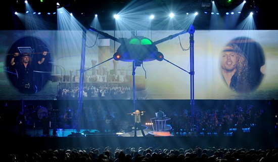 Az 5.1. térhatású hanggal, HD kamerákkal rögzített előadás szerves részét képezik a 45 zenész által, élőben előadott The Eve of the War (A harc előestéje), valamint a Forever Autumn (Mindörökké ősz) című slágerek. A zenekart személyesen Jeff Wayne vezényli.