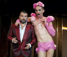 Stohl András egyszerűen tökéletes. (Ha csak a filmbeli elődökhöz hasonlítom: odaállhat nyugodtan Michel Serrault és Robin Williams mellé.) Hisztis öregecske dizőz, odaadó feleség, amikor a helyzet úgy követeli, sőt gyöngéd anya, amikor a helyzet úgy adja. Georges-tól rengeteg szeretetet kapott és kap, és a maga küsssé klimaxos módján viszonozza is. És voltaképpen erről szól a történet, a szeretetről. Georges (Hevér Gábor) nagyon szereti Albint, énekes sztárt faragott belőle, és minden egyes fellépésekor örül, ha bejelentheti a mulató közönségének (nekünk). Ismeri a gyengéit, lenyeli tőle a tipikus női hisztiket – és együtt boldogok. Csak hát a többségi társadalom…