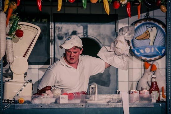 Az biztos, hogy ez a változat működik, és előnye, hogy könnyen mozdítható, utaztatható az előadás. Nemrég beszéltem annak a csemegepultnak a tulajdonosával, akinél dolgoztam. Felmerült, akár a vásárcsarnokban, az eredeti helyszínen is játszhatnánk a produkciót. Elég sok piac van Magyarországon, az előadás sok helyre elutazhat azáltal, hogy nem kell sok színészt egyeztetni hozzá.