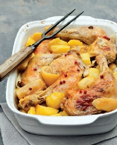 - A csicsókás fazékba dobom a csirkecombokat, a megpucolt mogyoróhagymát, a maradék 2 citromot gerezdekre vágva, a megtisztított fokhagymát, a kakukkfüvet és a rózsaborsot. Így pácolom a csirkét egy éjszakán át.