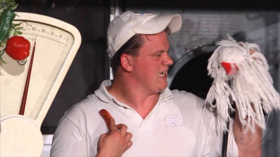 A bővérű humort – az egyik csúcs, amikor kolbászok-szalámik-oldalasok őrült csatáját látjuk – csak ritkán szakítja meg egy már-már megrázó pillanat. Ilyen, amikor Ötvös megöleli az egy koszlott törülköző darabban érzékeltetett Köntöst, a magányosan élő, pszichésen terhelt öregasszonyt. Vagy ahogyan az unokáját megjelenítő kapucnis felsőt súrolja gyengéd, vigasztaló érintése. Ez az egész káprázatos animációs munka a rendezőasszisztensként is közreműködő Schneider Jankó bábszínész, bábrendező érdeme, de nem jöhetett volna létre Ötvös András átváltozó képessége és hanggal ábrázoló kivételes tehetsége nélkül.