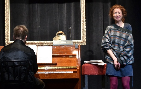 És dalol. Mert az említett Szép Róza bordalszerző, ugyebár, akiből csak úgy ömlik ám kifele a bordal! PNL ezeket a kancsal, bandzsa szövegeket Marcella külön kérésére írta meg teljessé (ugyanis eredetileg a Wolfrámban csak az indító sor, a bemondás volt meg) – no hát, ez a nagyirodalom. Szépnek nem nevezhető, de tökéletlenségében tökéletes – tehát NAGY. És stílusban remekül illik hozzá Dinyés Dániel zenéje. Dinyés amúgy is különös módon vesz részt az előadásban. Zongorázik (néha énekel), szinte mindvégig háttal, de egyszer csak felemeli két kezét, s a kesztyűn apró fejek mutatják, hogy íme, támad a hadsereg. Szereplő is.