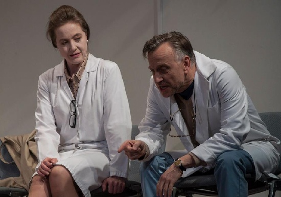 A klinika törtető igazgatóhelyettesétől (Für Anikó) az előléptetésre váró orvosokon át a vallás-, közoktatás- és egészségügyi miniszterig (Gálffi László) bezárólag valamennyi érdekelt a saját pecsenyéjét sütögeti a professzort lassan felemésztő pokoltűz lángjai fölött. A konfliktust tovább mélyíti, hogy Bernhardi professzor zsidó származású, így az orvostudomány kontra egyház vitában egy újabb szempont is árnyalja a bonyolult, ugyanakkor végtelenül világos képet. Az igazgató – akinek gondolkodásában a betegek professzionális és kifogástalan ellátása foglalja el a központi helyet – még az asszisztenseként mellette dolgozó fiával is sorozatos összeütközésbe kerül.