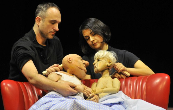 A bábok ebben a hibrid előadásban különleges fontosságúak. Hoffer Károly tervezte a figurákat, melyekkel olykor igen kegyetlenül bánnak, hajigálják, eltörik őket. Megjelenik egy csak emlegetett szereplő is: Cliff és Sally nem várt, majd felmagasztalt, végül abortusszal megsemmisített bébije is. Az üvegszerű, megfestetlen, darabokra szétszedett báb torokszorító a maga kialakulatlanságában.