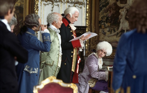 A császár és Mozart (Jeffrey Jones, Tom Hulce) első találkozása Milos Forman filmjében, az Amadeusban