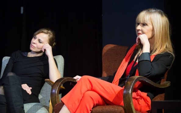 Az első részben elhangzó kortárs szövegeket mindig egy adott témára fűzik fel a szereplők. Az én megtisztelő feladatom – amiben egyébként lubickolok –, hogy az est hívószava mentén beszélgessek a három színésznővel, Annamáriával, Adriennel, Zsuzsával és egy meghívott vendéggel, akinek biztosan vannak inspiráló gondolatai, történetei a kiválasztott téma kapcsán. Például a megszállottságról Novák Péterrel, a nyersanyagról mint témáról Herendi Gáborral gondolkodtunk együtt. Az örökség kapcsán Udvaros Dorottya lesz a vendég – nagyon boldog vagyok, hogy elfogadta a meghívásunkat! Mindig együtt nézzük meg az első felvonást, a talkshowban ezért nyilván szóba kerülnek érintőlegesen a látottak élményei, de nem a játékot beszéljük ki, hanem ugyanazon hívószó kapcsán asszociálgatunk, szabad beszélgetés formájában tovább visszük a témát, amit én tartok kézben – vagy inkább „ívben”.