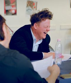 Az előadás azonban több ennél: közös komédia és cinkos játék is. A szereplők viselkedésének szigorú szabályait ugyanis a közönség előre tudja, beavatottként láthatják, miként lelepleződnek le a titkok és hazugságok. Az olvasópróbák idején az egyik fivért, Matthew-t alakító Ötvös Andrással beszélgettünk.