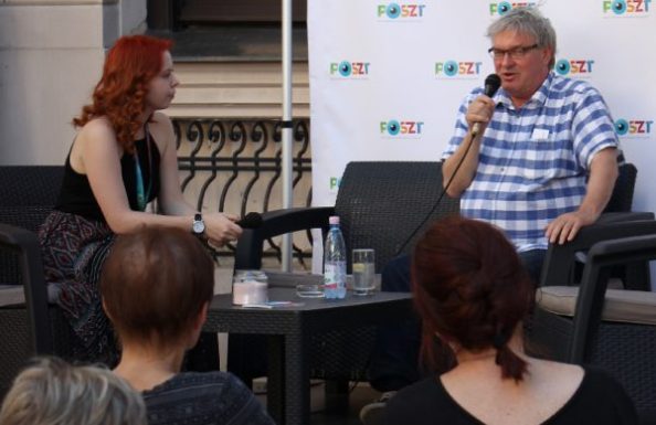 Sokfelé megfordult az első napokban Závada, hiszen felkért előadó volt a Nyílt fórum felolvasószínházi bemutatói után, a szakmai beszélgetéseken is többször hozzászólt, mert köze van a témákhoz és sokszor az előadást is jól ismeri, még saját korábbi dramaturgiai munkái révén. Így kaphattunk világos szerkezetű, jól felépített áttekintést a miskolciak Kivilágos kivirradtig-jának hangsúlyos pontjairól, s ezzel segített az előadás kevés szavú dramaturgjának. Závada Pált rövid beszélgetésre kértem a közönségtalálkozó után.