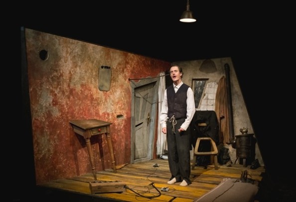 A kishitű senki-hivatalnok szégyenérzete hullámokban hozza a felszínre a kisebbségrendűséget, az irigységet, az irreális vágyálmokat, az én teljes megkérdőjelezését, majd széthullását. Az előadás harsány fényei és mély sötétjei kiemelik a lélek rezdüléseit, az agy csapongó képzelgéseit. Végül egy zseniális megoldással Keresztes addig-addig feszül neki a pinceodúnak, míg az egész teret (a világot) kiforgatja helyzetéből.