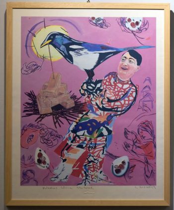 drMáriás 1991-ből jött egy korábbi korszakokban minálunk nagyobbat virágzó országból, Jugoszláviából Budapestre, mint katonaszökevény. Megírta jövetelét könyvben is, nem élhet Milošević nélkül, és ha küzdelmesen is, de festőként, zenészként, íróként fontos része lett az anyaország és Budapescht ún. kulturális életének. Punk és dada nagyívben, és igen, meghatározó része lett a kulturális tudattalannak, hogy Szabó Rozáliát Noviszádtól húsz kilométerre agyonbaszta a villám, és hogy apa kocsit hajt és hogy basszál! És hogy a Bécsi kapus-szájszerkezetű Geronazzo Mária prerafaelita külsőségek között csónakázik a Városligeti tavon II. Erzsébet brit királynővel. „Pop, csajok, súlyemelés; valamint Dávid Ibolya”. Ez nem egy drMáriás kép, hanem egy eredeti, ma már vagy tizenöt éves Vágvölgyi-cikk címe, pont a Máriásos borítós könyvből egyébként, mely írásban drMáriás éppúgy benne van, mint Nick Hornby. Ha még tetszenek rá emlékezni, Dávid Ibolya volt az első Fidesz-kormány azon korábbi MDF-es igazságügy-minisztere, aki nem értett a focihoz, később viszont harcba indult Orbánnal a jobboldal főségéért. Elbukott. Máriás Dávid Ibolyával kezdte meg közéleti tárgyú festészetét nagyjából ekkoriban, tizenöt éve. Engem, akit a legjobban talán a politikai hatalom és a popkultúra közös halmaza érdekel, az elejétől lenyűgözött a művész e korszaka. Művtöris allúziókkal gazdagított piktorális publicisztikának neveztem el drMáriás újabb irályát már vagy tíz éve, mikor hozzákezdett megunhatatlan sorozatához, a magyarországi hatalom és a kollektív tudattalant tároló, nemzeti agytörzset romboló tömegkultúra ikertornyainak sebészi szikével és főként nevetéssel történő gyógyításának.