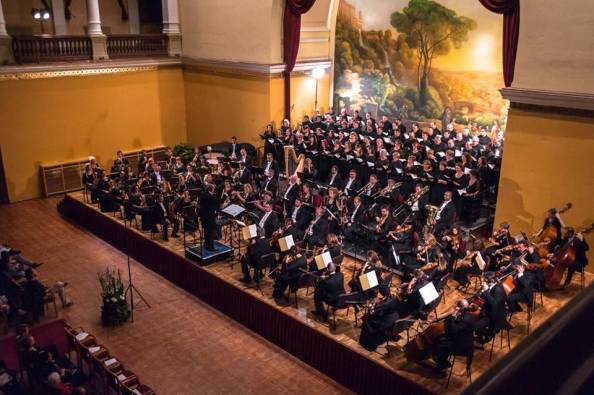 A Honvéd Férfikar október végi koncertje a nagybetűs Német rekviem mellett egy Schubert-művet is kínált – de soha rosszabb meglepetést… Tegyük hozzá, az Olasz Intézet nagyterme pompás hátteret adott a romantika nagy zeneszerzőinek: a színpadot hátul éppen ilyen hangulatú festmény díszíti.