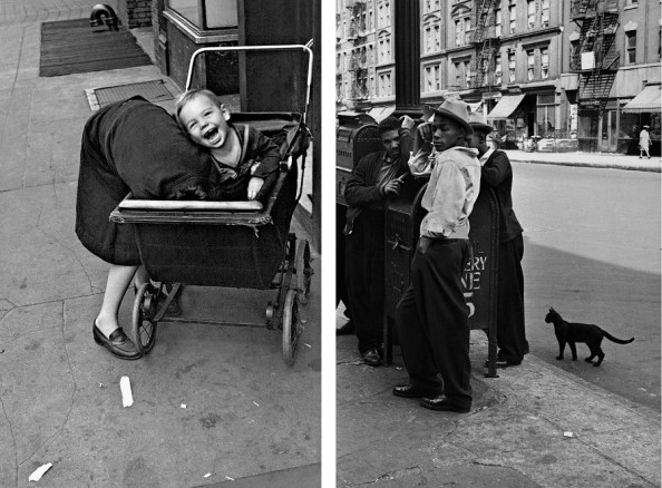 Ha az Albertinában járunk, mindig érdemes megnézni vagy újranézni a Batliner Gyűjtemény állandó kiállítását, most azonban itt is rejlik egy kisebb kiállítás. Helen Levitt amerikai fotóművész az 1930-as évek végétől a 70-es évekig gyakorlatilag szociofotókat készített (egy rövidebb filmes kitérővel). Szereplői nagyrészt gyerekek, valódi vásott kölykök, és legalább annyira vásott felnőttek. Mindennapjaikat, játékaikat láthatjuk a főleg fekete-fehér fotókon. Nagyrészt olyan dolgokat csinálnak, amit a mai gyerekeknek senki nem engedne meg – sajnos. Megelevenedik egy letűnt világ, ami azonban talán mégsem annyira a múlté. Nekem a fotókon viselt ruhák jelentették a legnagyobb meglepetést. Ha itthoni képeket nézünk a 40-es vagy a 60-as évekből, a felnőttek és gyerekek viselete is teljesen eltér a maitól. A jórészt New York-i képeken azonban csak a nők és néhol a kislányok ruhája helyezhető el könnyen az adott korban. A fiúk bármelyike, a férfiak nagy része akár a szomszédban lakhatna ma is.