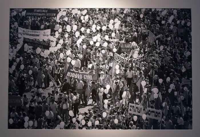 A május elsejei felvonulás tömegét látjuk, és az esetleges virsliebéden túl emlékezünk a muszájra, a hosszú várakozásokra, a gyorsított menetelésre a Dózsa György úton, aminek – ma már kimondani is tudjuk – az égvilágon semmi értelme nem volt. A Balaton-parti nyaralást, a szűkre szabott kis boldogságot, hogy azért legalább a Balatonhoz eljutunk.