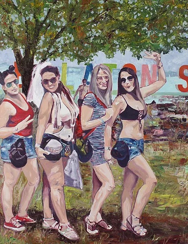 Akárcsak az ábrázolásuk. Ha a kisvárosi Zoltán csoportképében Szinyei Merse majdnem-impresszionizmusát véljük felfedezni, Dalma (Florida) mögött Turner, ha nem éppen Egry József ege fénylik. Elisabeth erdős temetőrészletén Paál László hatást találna egy megszállottan hatásokat felfedező művészettörténész hallgató, míg Attila piros kocsija egyszerre tud hiperrealista és expresszionista lenni.
