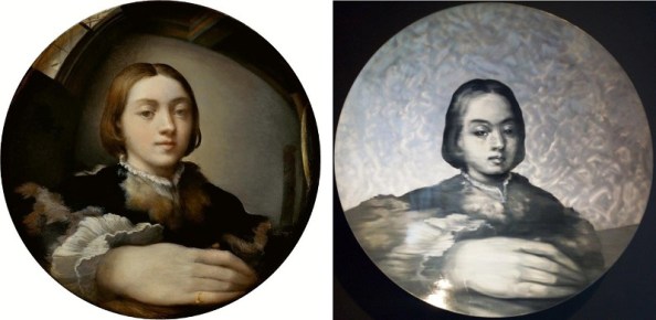 Emlékmeghatározási gyakorlat művészettörténész hallgatók számára. A bejárati Parmigianino még könnyű feladat, ott a variánsok céduláján a pármai mester neve, csak az Önarckép domború tükörben címet kell hozzáadni, de a többi műnél nem segít felirat az azonosításban. Martin C. Herbst kiállításán megfejtendő Raffaello-parafrázis, Bronzino-variáns, másik Parmigianino és Pontormótól az Alabárdos arcképe; utóbbi Dillmann Vanda szíves közlése.