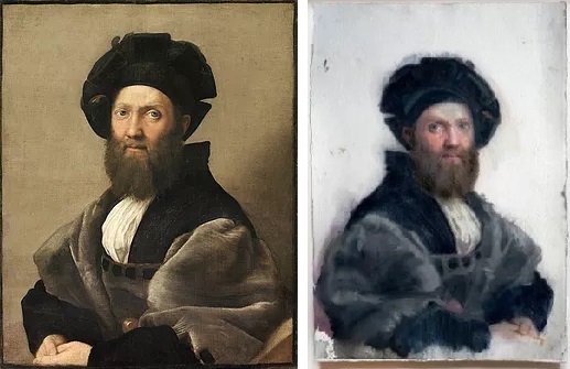 Raffaello Castiglione-portréját olajjal festette meg, de papírra, és a megtévesztés kedvéért átforgatta, de itt, ennél a finom-furcsán szabálytalan replikánál ideje megállnunk és felhagynunk a bizarr felsorolással. Az osztrák művész ugyanis a posztmodern kor gátlás nélküli fenegyereke, ez látnivaló, ám másfelől izgalmasan, hogy ne írjam, veszélyesen igényes. Ecsetjárása aggályosan pontos, fémlapjainak és -kereteinek kezelése higiénikus, ha egy Vermeer-gyanús tondójának halványlila keretére gondolok, bátran írhatom, hogy elegáns.