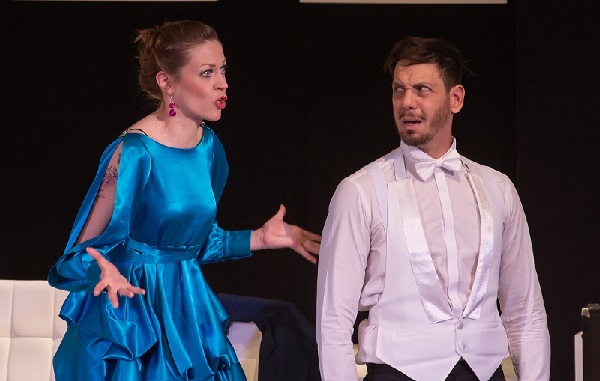 ALP & MD profizmusát említettem már, de a magyar színpadra állítók is kitettek magukért. Simon Kornél egy háttérben elhelyezett képernyőről narrál, mutatja be a szereplőket, szól bele a jelenetekbe, még mielőtt mókagyártó felszínes csibészként a színre lépne. A Bognár Róbert által tervezett egyetlen lakásbelső kellően zegzugossá válik, hogy a különböző helyiségekbe el lehessen tűnni (vagy menekülni). A képernyő pedig továbbra is játszik, 20. századi hírneves festők képeit váltogatja – jelezve a magas kultúra állandó jelenlétét…