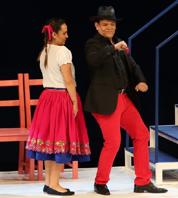 A színre állításban a rendező még egy fricskát helyezett el. Figurái latin-amerikai alakok, mai ruhákban. Sőt Zerlina és Masetto lakodalmán poncsóban vonul be a kórus, de még a főszereplők is (amikor éppen inkognitóban jelennek meg, maffiózónak álcázva).