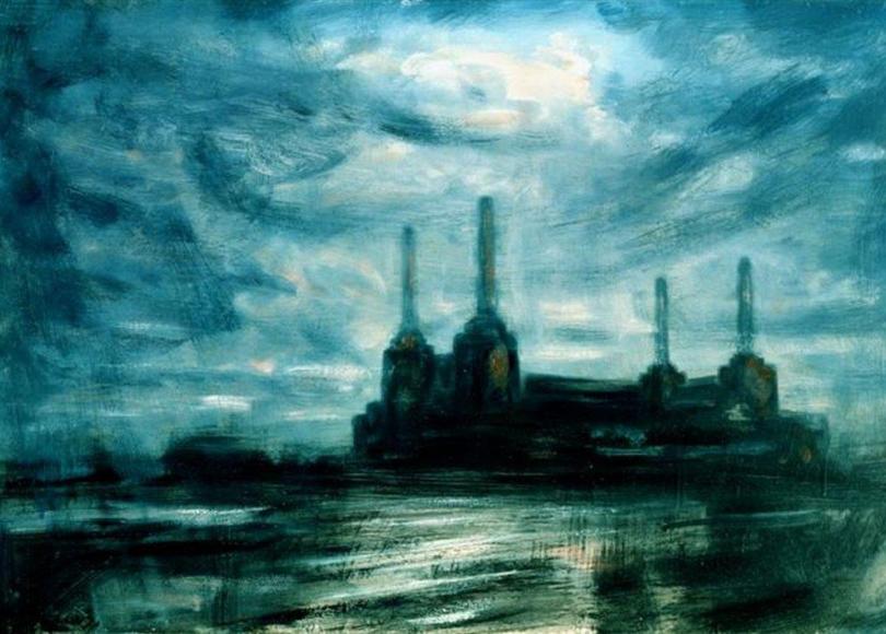 A zöld-fekete, borongós világban mégsem szabadulunk a romantikától. Ha az elvárható festészeti előzmények és példák hiányoznak is, a hangulat, a szemlélet és a megjelenő tárgyak világa annál inkább visszaemlékezik arra a romantikus teljességre, amely a tizenkilencedik századot oly sokszor, sok formában betöltötte. A Kiáltás és kiáltás két rokonszenvesen – igenis, rokonszenvesen – üvöltő farkasa Petőfi vonatkozó dalára, az évszázaddal később épült Battersea erőmű ipari tájképe akárhogy is, Dickens jóval korábbi Londonjára hivatkozhatna.