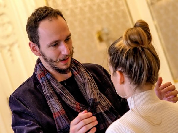 Fábián darabjában ide-oda csúszkál a három alak: a szerepek: Bálint, Zsuzsi és Oszi; a színészek: Formán, Gyöngy és Domokos; és az előadásbeli darab szerepei: Néró 1, Seneca/Britannicus/és mások, rendező/Néró 2. Ez a játék hol magába von, hol meg elenged, a néző ki-belépked a próbafolyamatba, a magánéleti problémákba, az áthallásokba. Ehhez igazából nincsen szükség a regény ismeretére, bár néhány utalást talán érthetőbbé tenne. Végül is az előadást azért szánják tanterem-színházinak (én ugyanis a Benczúr Házban láttam), hogy a középiskolás tudjon eltávolodni a színjátéktól, és gondolkodni kezdjen.
