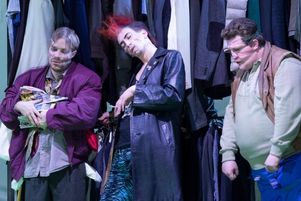 Az összhatáshoz sokat hozzátesz a jelmeztervező Szakos Kriszta, bár nem sok különbséget mutat a valódi és mű-lepukkantság között. Nagyon jól használja a színeket, vásári festettséget ad a játszóknak. Ruhái státuszbeli különbségeket és jelenidejű áthallásokat sugallnak, érzékeltetnek. Nincs ugyan feltüntetve sminkes, így nem tudni, közvetlenül kinek köszönhetők a celluxos műgrimaszok, félremázolt rúzsok, rajzolt babaszempillák. A lényeg végül is, hogy kiválóan működik minden.