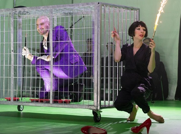 Mitől más és mitől izgalmas az az előadás, amelyet a Budaörsi Latinovits Színház a Szentendrei Teátrummal közösen jegyez? A Junior Príma-díjas fiatal színész-rendező, Fehér Balázs Benő munkáját eredeti, már-már üde, következetesen végigvitt elképzelés megvalósításának tartom. Igaz, ennek oltárán időnként feláldoz valamicskét a feszes tempóból, mégis a brechti színház lényegét ragadja meg. A legfeltűnőbb – legalábbis számomra – a stilizált mozgások rendszere, amely az előadás kohéziós alapját adja. A színészek marionett jellegén néha átüt emberi arcuk, s ez a különös kettőség új dimenziókat nyit. Mindezzel éppen az elidegenítés érzetét erősítik, noha az előadás számos pontján nagyon is valódinak érezzük a szándékoltan túlrajzolt alakokat.