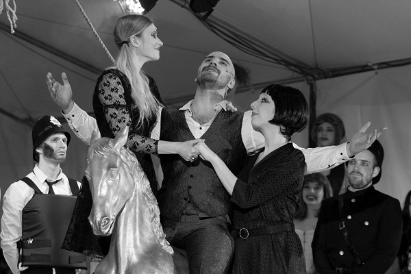 A színészi játék önmagában is különleges, erőteljes és igazi meglepetések is adódnak. Hatásában mindenképp ezen pontok közé sorolható Ilyés Róbert interaktív kezdő jelenete, aki – becsületére legyen mondva –, szinte végig tartotta a megteremtett feszültséget. Kolduskirályi filozófiája, üzleti érzéke és fogásai szinte túl ismerősek. (Most Peacock szerepében láttuk, de Zalaegerszegen már játszotta Bicska Maxit is.) Brasch Bence sármos, önző, dörzsölt és kíméletlen Bicska Maxi, akinek hűvössége vonzó. Érthető a szerelem és féltékenység, hűség és árulás összetett érzése, ami a hozzá kötődő nőket jellemzi. Most éppen ő az élet császára, karneválherceg, kiragyog a többi közül, aki tudja, semmi nem tart örökké. Soha nem láttam még ilyen izgalmas karakternek, és a megszokottól nagyon eltérő stílusban játszani az általam igen kedvelt Takács Katit, mint most Peacockné szerepében, aki meglehetősen erős kézzel irányítja a kolduskirályi családot. Számító és szerelem-párti, piás és józan, kemény és sérülékeny. Figyelemreméltó alakítást nyújt Kurta Niké (Polly), egyszerre naiva, igazán szerelmes és nagyon is tudatos nőci, aki tényleg a lehető legjobbat választja – mármint Maxit – a kínálatból. Minden szempontból. Nem mellesleg remekül énekel és mozog, és irigylésre méltó, hogy tényleg neki vannak a legszebb lábai a Sohóban.