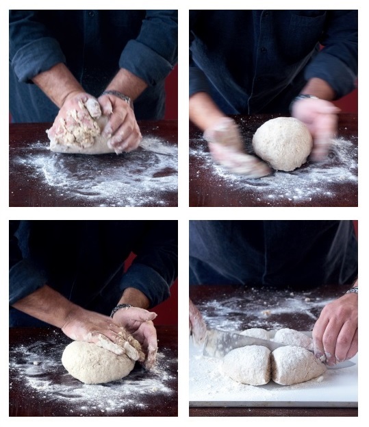 Borítsuk a ragacsos masszát lisztezett munkafelületre, és finoman gyúrjuk össze, hogy összeálljanak a hozzávalók – de ne dagasszuk. Formázzunk a tésztából golyót, a tenyerünkkel alányúlva, úgy gömbölygetve a munkafelületen, majd kissé lapítsuk ki.