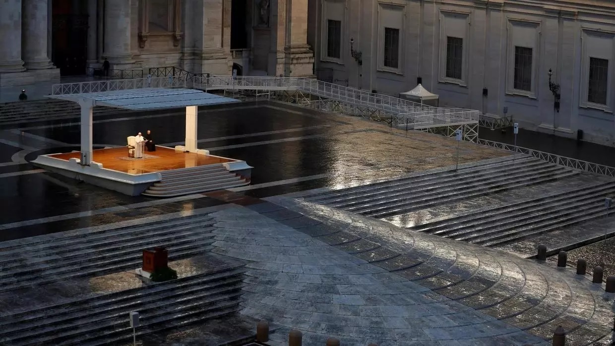 Ferenc pápa misét tart a karantén miatt üres Szent Péter téren, 2020. március 27-én (Fotó: Vatican Media/SIR)