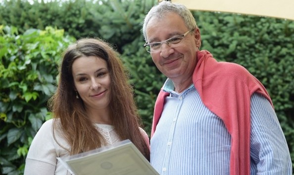 A díjazott: Boros Bianka és a díjátadó: Gábor György