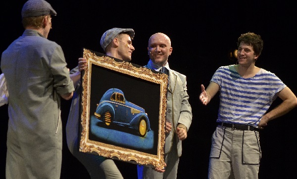 Az acélkék Alfa Romeo, momentán nem a jogos tulajdonos kezében van (de ez csak átmeneti), a jobb oldalon Lingeström báró (rosszfiú, Dankó István) és természetesen Gorcsev