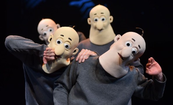 Hatalmas összecsiszoltságot láthatunk a deszkákon, ahogy együtt mozog az öt színész. Ugyanis míg az épp aktuális Gusztávunk tesz-vesz egy adott jelenetben, addig hárman – a maszkjukat mellőzve – a zenei aláfestésről gondoskodnak a világ összes kellékével a biciklicsengőtől a reklámhangokig. Zörejek, nyikorgások, placcsanások – a hangforrás mindig egy-egy színész. Aki pedig abból kimarad, az a vetítéssel foglalatoskodik, a legtöbb jelenethez ugyanis kapunk egy kis vizuális segítséget, kiegészítést is. Így a nézők is bepillanthatnak kicsit a kulisszák mögé, engedéllyel. Mindannyian kiválóan helytálltak, adtak egy egészet, mikor kellett, mégis lenyűgözött egyedi mozgáskultúrájuk, ahogy saját feladataikat megoldották. Öten együtt adták az igazi Gusztáv-élményt.